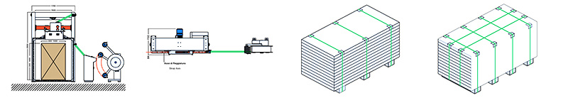 the strapping head performs a transverse movement of compensation that enables equal tension between the edges of the product thus ensures greater stability.